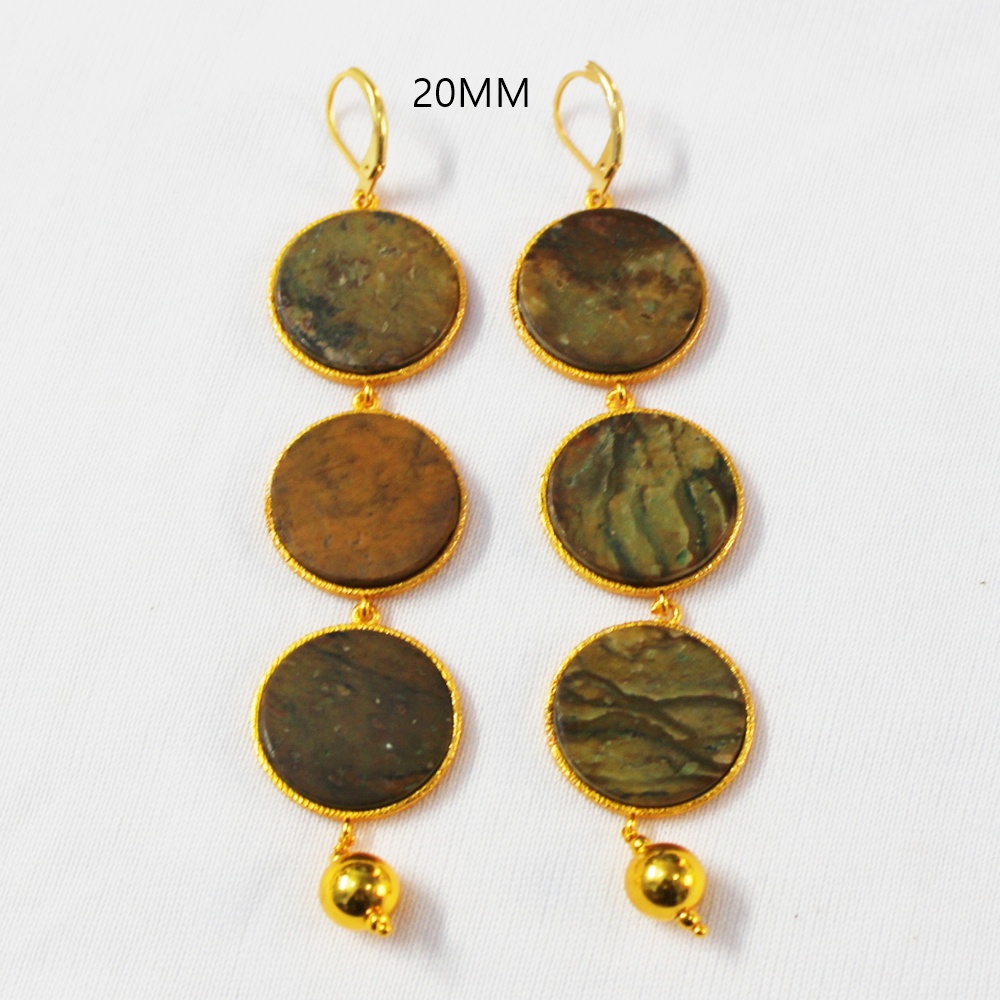 GOLD PLATED ROUND CERCLE 20MM COCONET JASPERÂ STONE SEATED DEIGNER EARRING