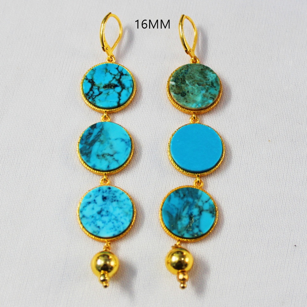 GOLD PLATED ROUND CERCLE 16MM TERQUISEÂ STONE SEATED DEIGNER EARRING