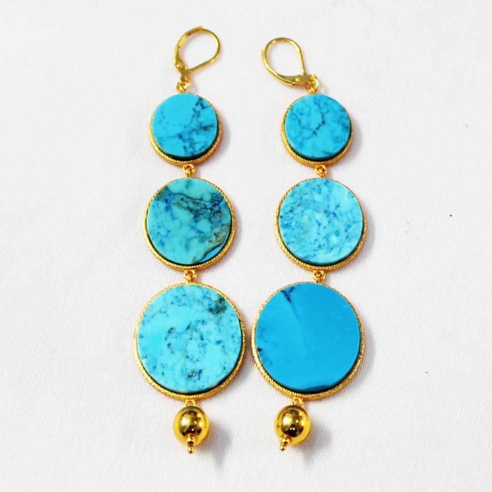 GOLD PLATED MULTY SIZE ROUND CERCLE TERQUISEÂ Â STONE SEATED DEIGNER EARRING