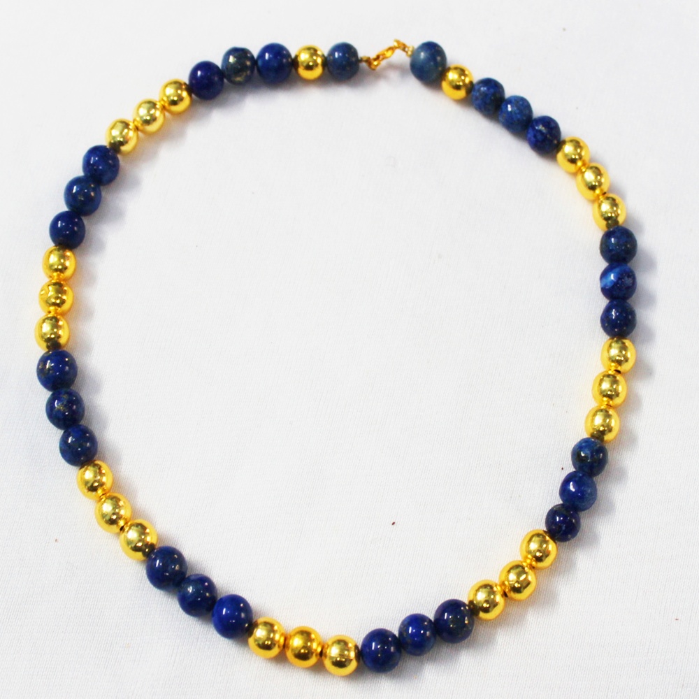 LAPIS STONE AND GOLD PLATED BRASS BEADS NECKLACE