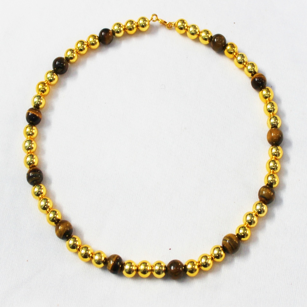TIGER S EYE STONE AND GOLD PLATED BRASS BEADS NECKLACE