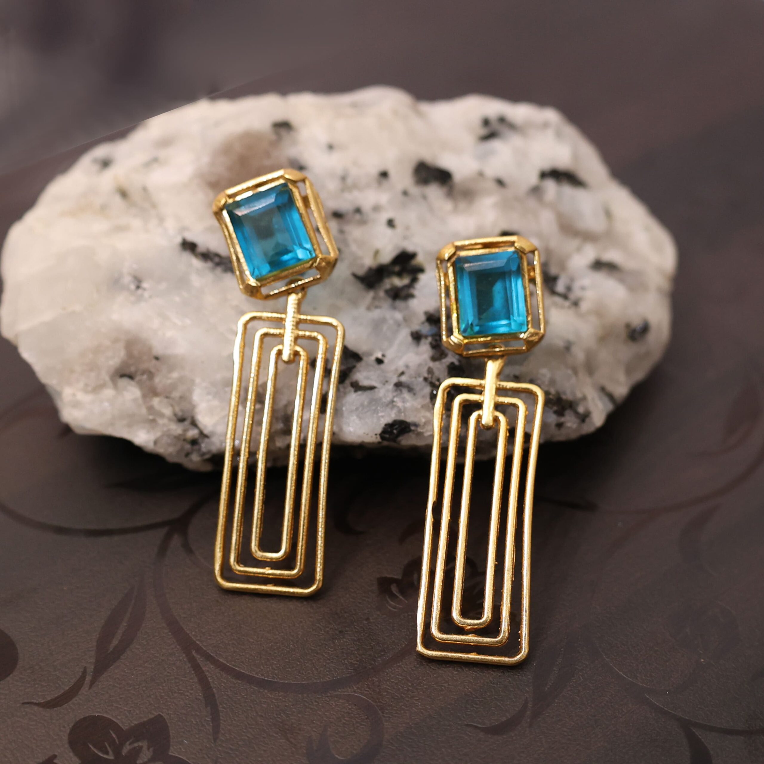 - DESIGNER EARRING GOLD PLATED NIKEL FREE WITH LABRADORITE STONE SEATEDOur Designer Earrings are a perfect blend of modern style and timeless elegance.