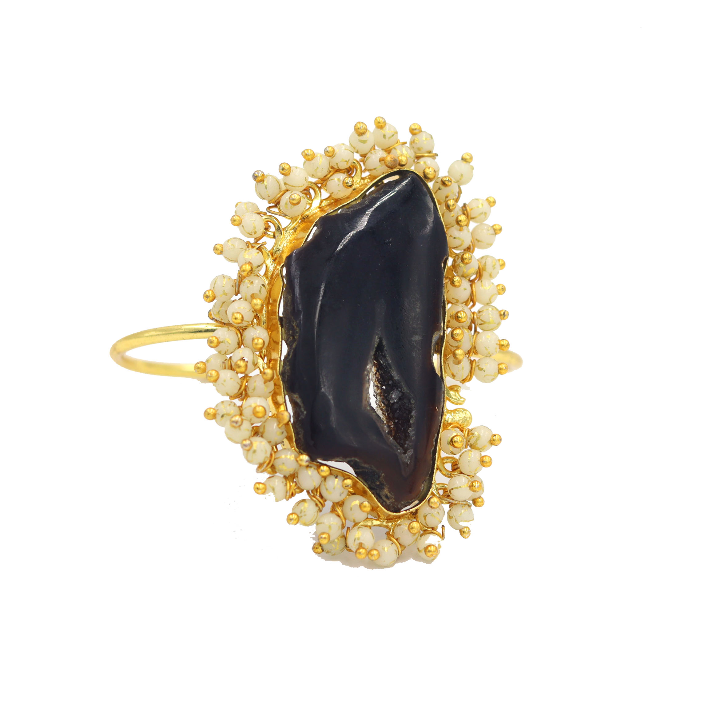 NIKEL FREE BRASS GOLD PATED CEOATED GLASS PEARL AND AGATEÂ STONE SEATED CUFF BRACELET