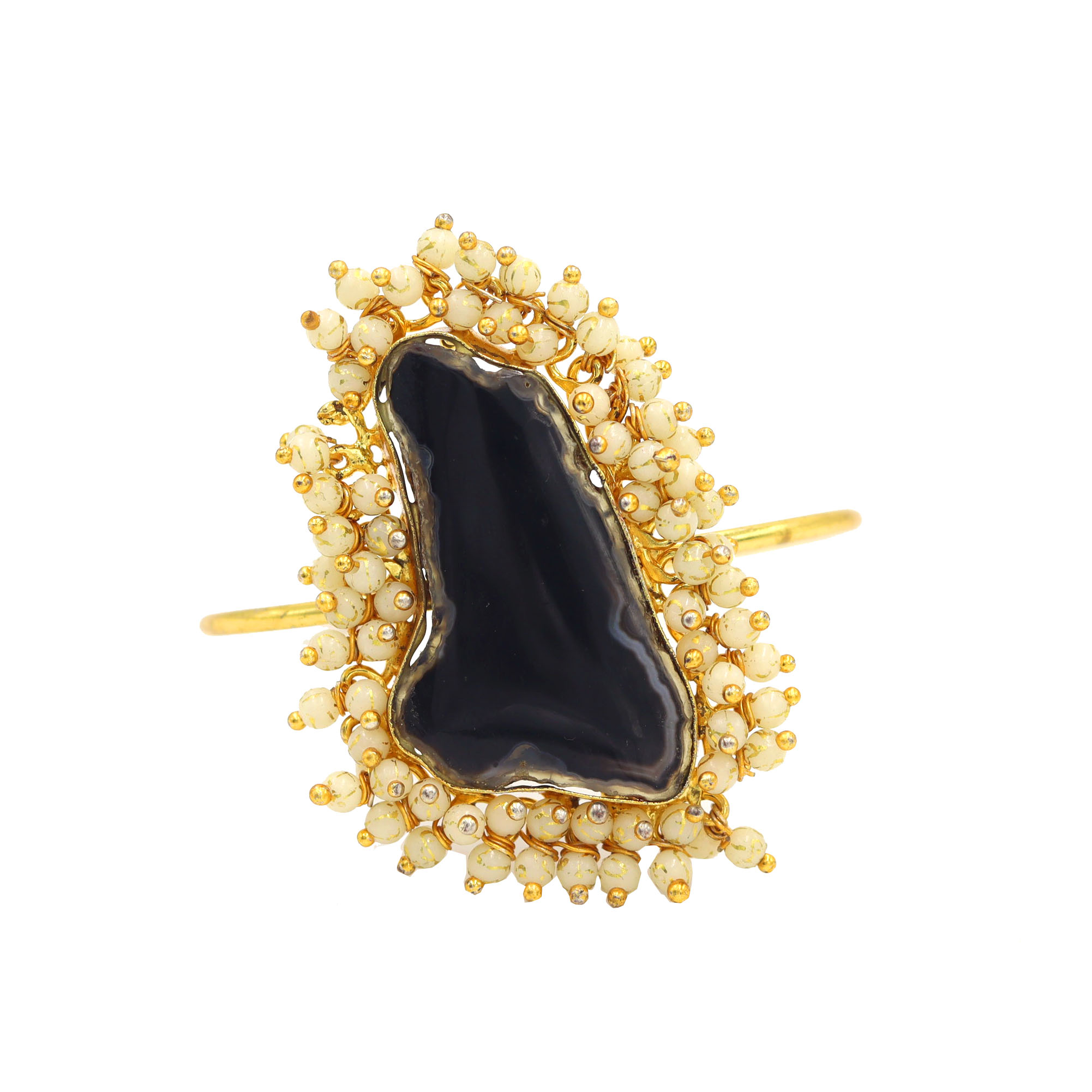 NIKEL FREE BRASS GOLD PATED CEOATED GLASS PEARL AND AGATE STONE SEATED CUFF BRACELET