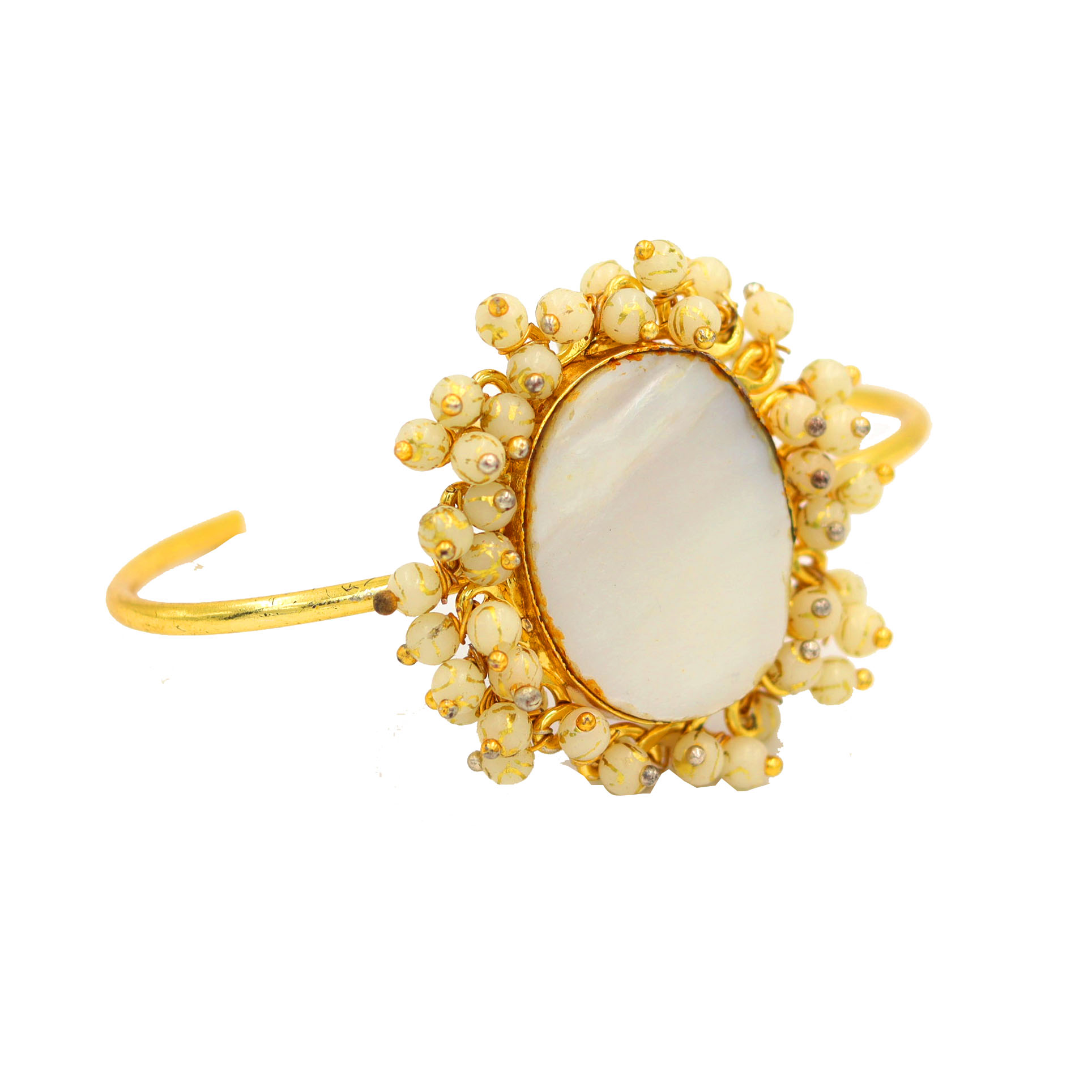 NIKEL FREE BRASS GOLD PATED CEOATED GLASS PEARL AND MOPÂ STONE SEATED CUFF BRACELET