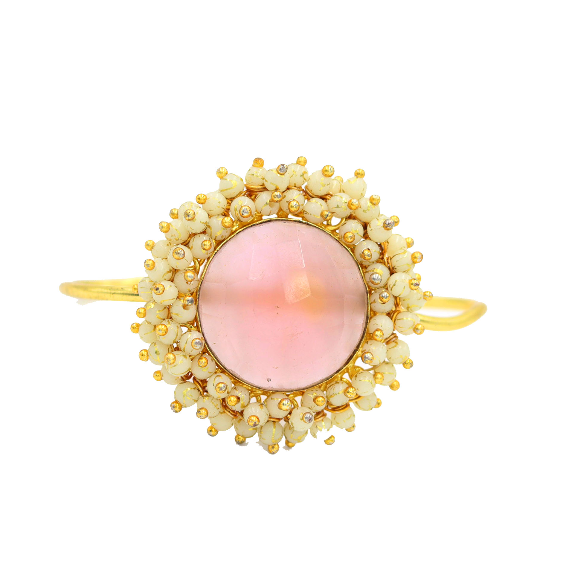 NIKEL FREE BRASS WITH GOLD PATED ECOATED GLASS PEARL AND ROSE QUARTZ DESIGNERÂ BRACLECT