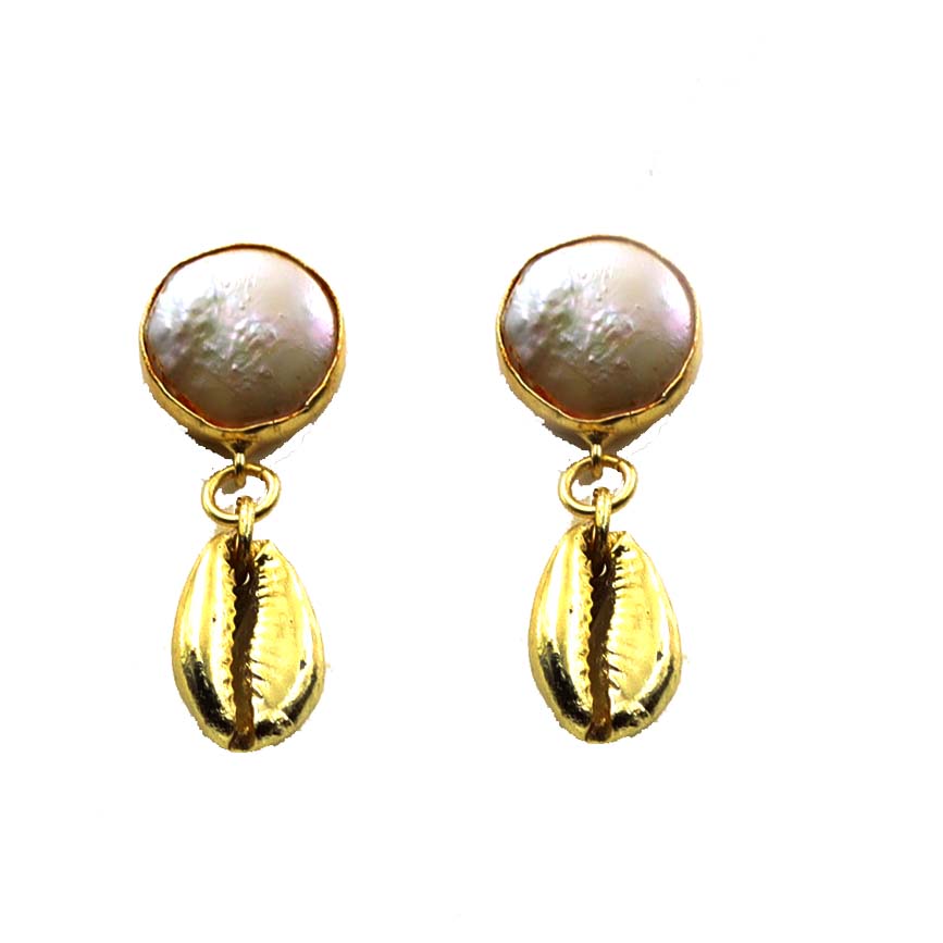 NIKEL FREE BRASS GOLD PLATED ECOATED HAND MADEÂ PEARL AND GOLD PLATED SEE SHEL DESIGNER EARRING