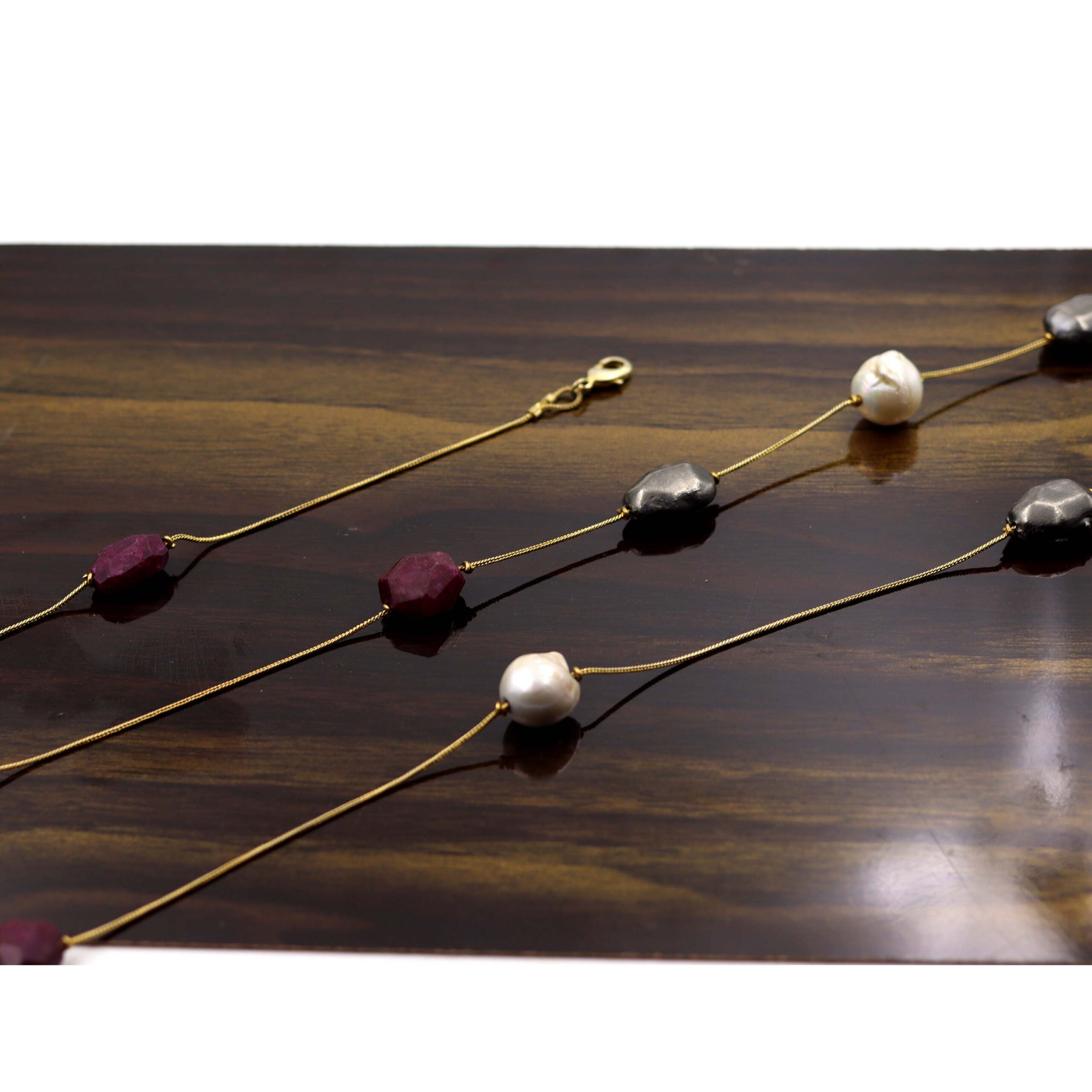 NIKEL FREE BRASS GOLD PLATED ECOATED WITH SEMI PRECIOUS FACITED NUTS AND METAL PEARL DESIGNERÂ NECKLACE