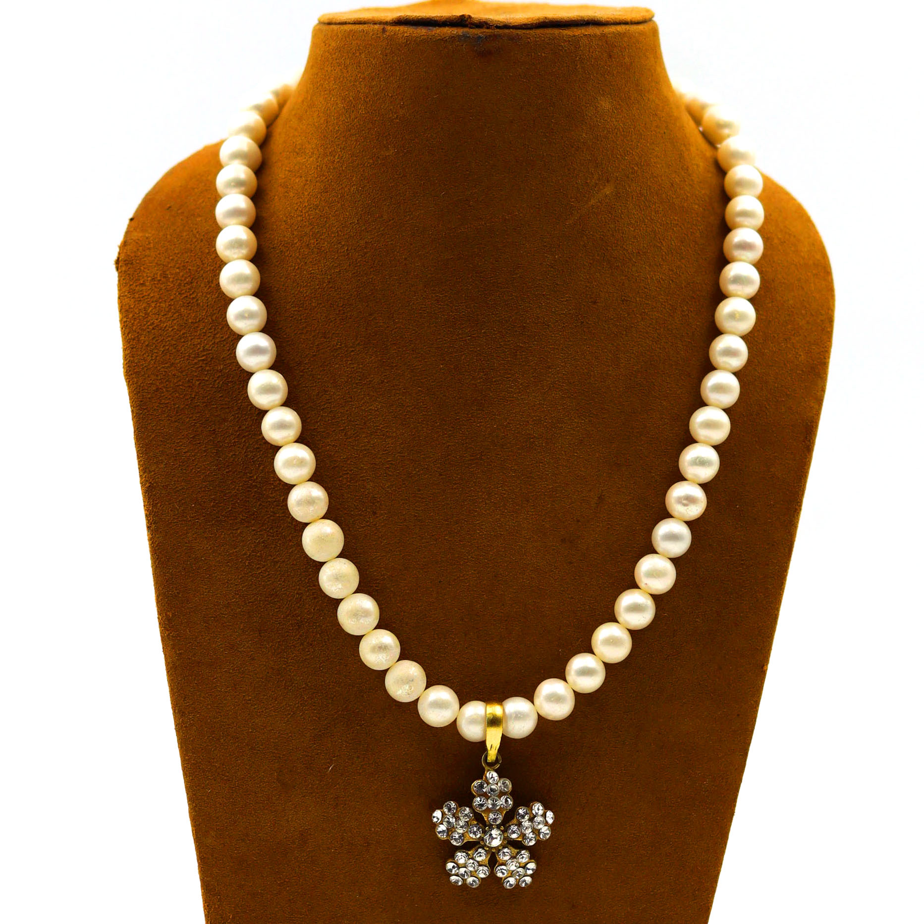 NIKEL FREE BRASS GOLD PLATED ECOATED WITH CZ SEATED PEARL DESIGNERÂ NECKLACE
