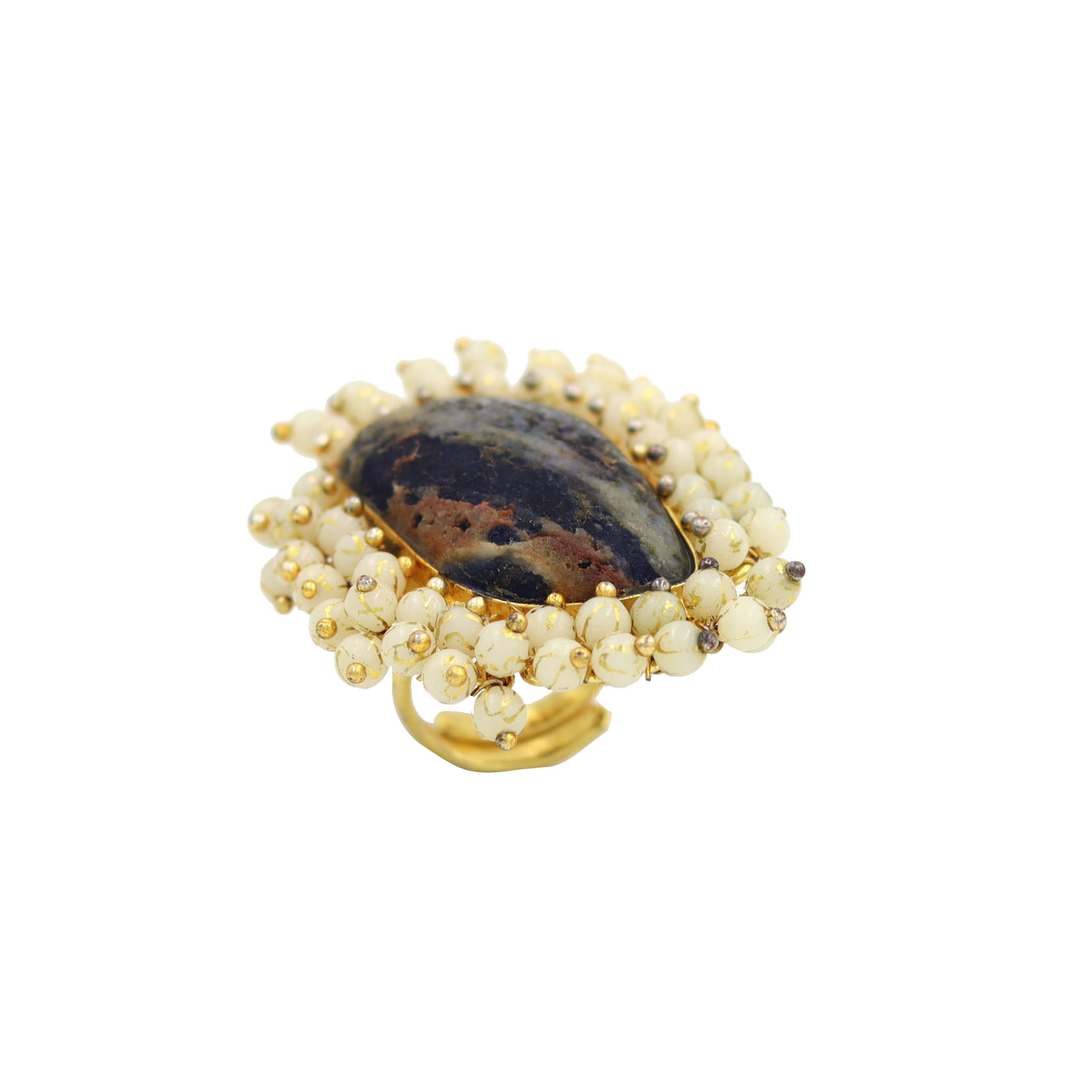 NIKEL FREE BRASS GOLD PLATED ECOATED HAND MADE GLASS PEARL AND MOP SEATEDÂ DESIGNER RING